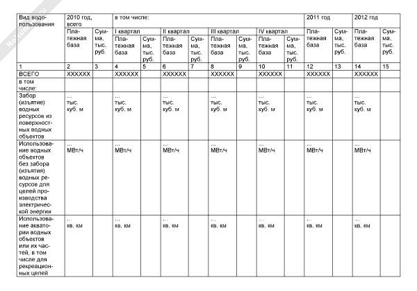 - 28Расчетная таблица для определения значения целевого прогнозного показателя «Доля заключенных договоров водопользования и принятых решений о предоставлении водных объектов на основании лицензий на водопользование и договоров пользования водными объектами, срок действия которых истекает в планируемом году, при сохранении потребности водопользования» в 2010 году