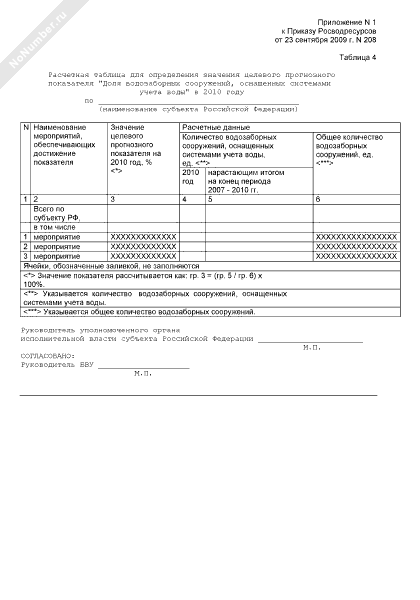 - 39Расчетная таблица для определения значения целевого прогнозного показателя «Доля водозаборных сооружений, оснащенных системами учета воды» в 2009–2011 годах