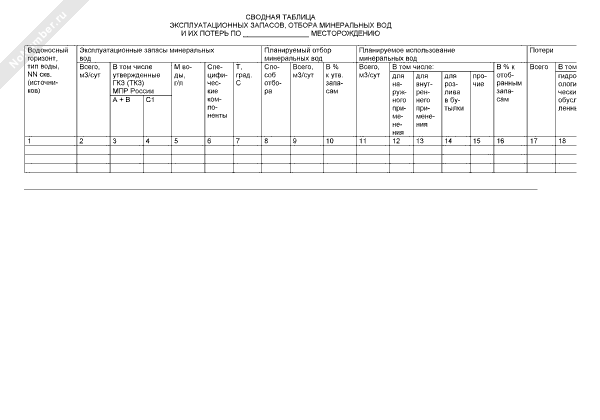 - 64Сводная таблица эксплуатационных запасов, отбора минеральных вод и их потерь по месторождению