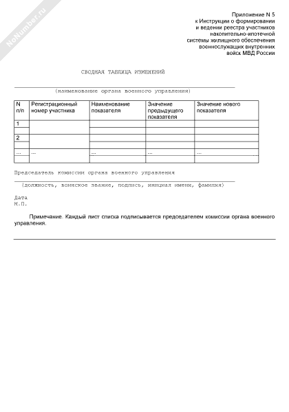 - 74Сводная таблица изменений данных военнослужащих, включенных в реестр участников накопительно-ипотечной системы жилищного обеспечения военнослужащих внутренних войск МВД России