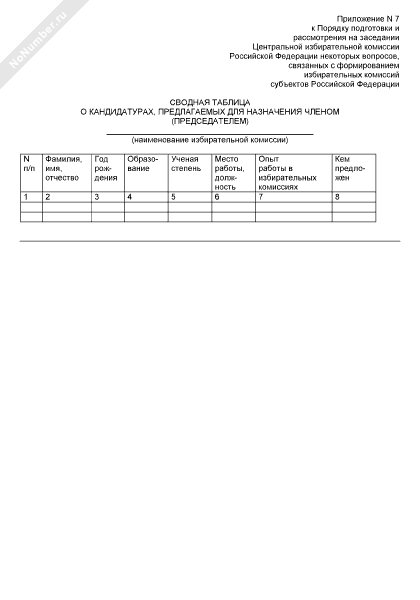 - 61Сводная таблица о кандидатурах, предлагаемых для назначения членом (председателем) избирательной комиссии