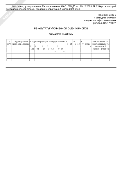 Сводная таблица результатов уточненной оценки рисков в ОАО «РЖД»