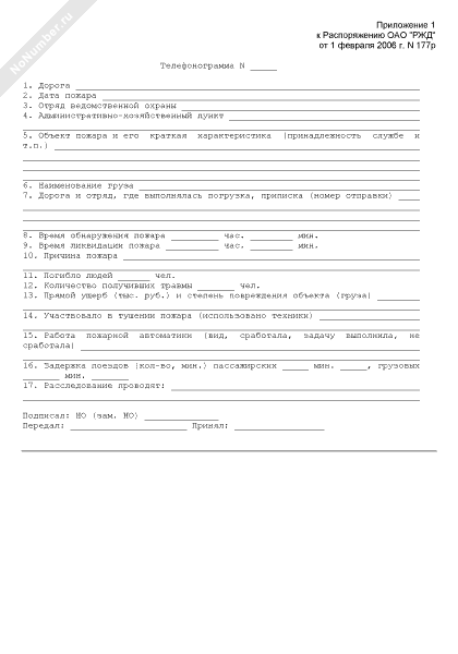 Телефонограмма об организации служебного расследования пожара на объекте, принадлежащем ОАО «РЖД»