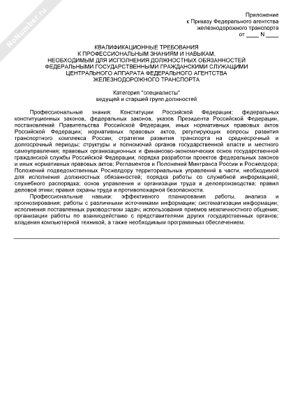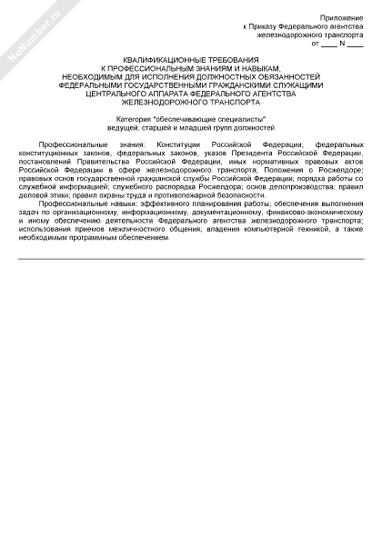 - 22Квалификационные требования к профессиональным знаниям и навыкам, необходимым для исполнения должностных обязанностей федеральными государственными гражданскими служащими центрального аппарата Федерального агентства железнодорожного транспорта. Категория «обеспечивающие специалисты» ведущей, старшей и младшей групп должностей
