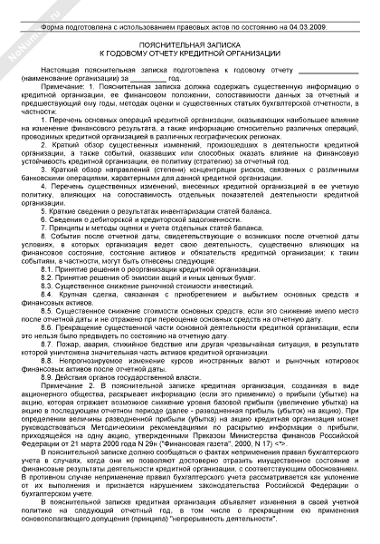 - 38Примерные требования к содержанию пояснительной записки к годовому отчету кредитной организации
