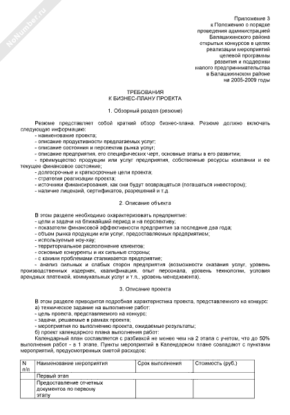 Требования к бизнес-плану проекта, представляемого участниками на конкурс в целях реализации мероприятий целевой программы развития и поддержки малого предпринимательства в Балашихинском районе Московской области (рекомендуемый образец заполнения)
