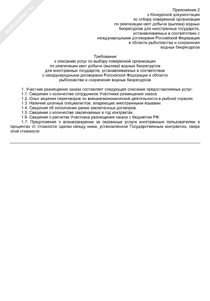 Требования к описанию услуг по выбору поверенной организации по реализации квот добычи (вылова) водных биоресурсов для иностранных государств, устанавливаемых в соответствии с международными договорами Российской Федерации в области рыболовства и сохранения водных биоресурсов