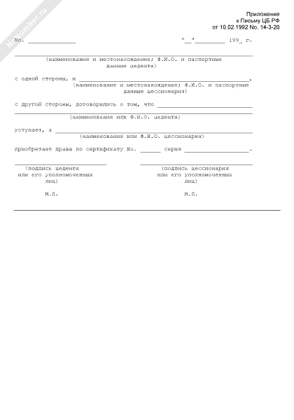 Уступка права требования по именному сертификату (цессия)