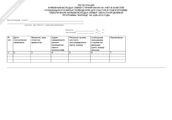 - 8Регистрация заявлений молодых семей Рузского муниципального района о принятии их на учет в качестве нуждающихся в жилых помещениях для участия в подпрограмме «обеспечение жильем молодых семей» целевой программы Московской области «Жилище» на 2006-2010 годы