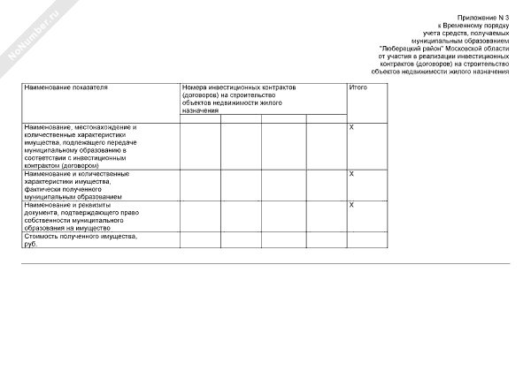- 12Учет имущества, подлежащего передаче муниципальному образованию Люберецкого района Московской области в соответствии с инвестиционным контрактом (договором)
