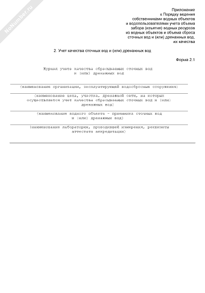 - 14Учет качества сточных вод и (или) дренажных вод. Журнал учета качества сбрасываемых сточных вод и (или) дренажных вод. Форма № 2.1
