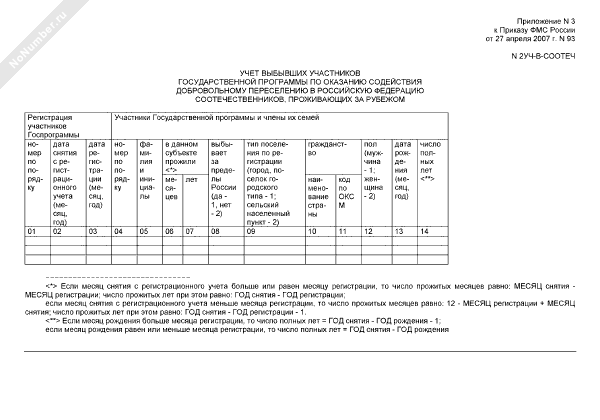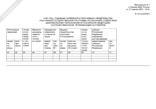 - 10Учет выбывших участников государственной программы по оказанию содействия добровольному переселению в Российскую Федерацию соотечественников, проживающих за рубежом. Форма № 2УЧ-В-СООТЕЧ