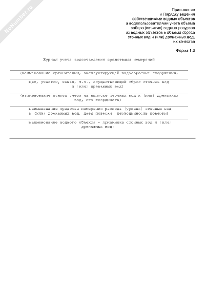 - 19Учет объема вод при водопотреблении и водоотведении. Журнал учета водоотведения средствами измерений. Форма № 1.3