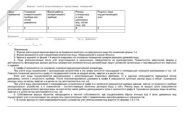 - 20Учет объема вод при водопотреблении и водоотведении. Журнал учета водоотведения средствами измерений. Форма № 1.4
