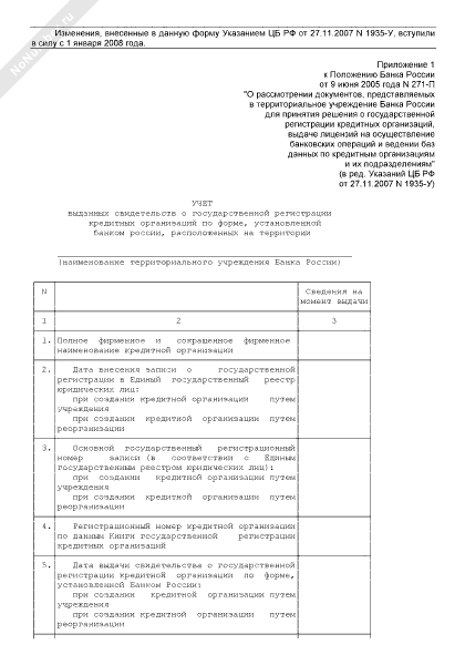 - Источник– Положение ЦБ РФ от 09.06.2005 № 271-П (редакция от 20.07.2010 № 2482-У)