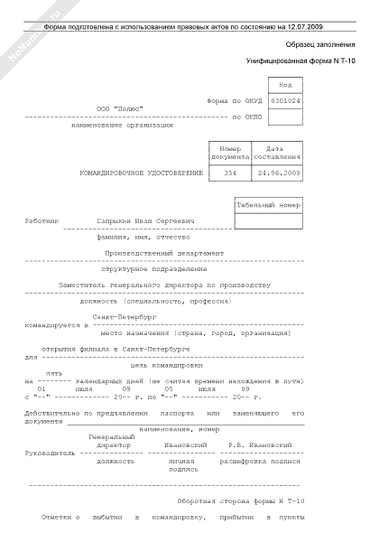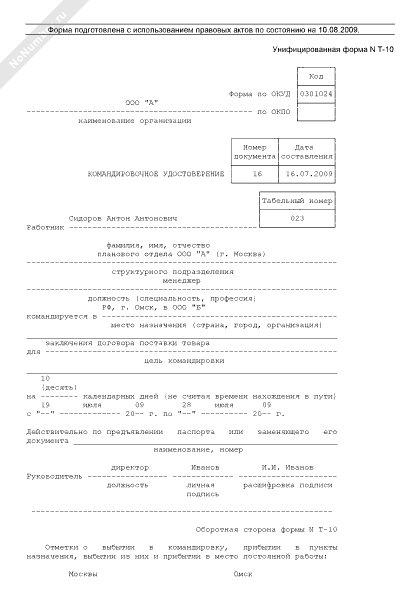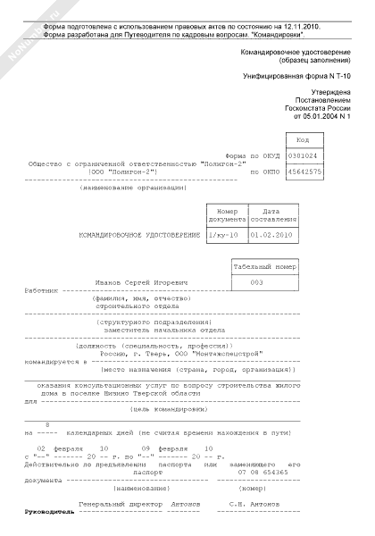 - 10Командировочное удостоверение. Унифицированная форма № Т-10