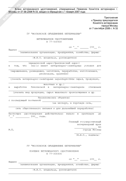 - 1Ветеринарное удостоверение, выданное организации (предприятию, хозяйству, ферме) г. Москвы в том, что она(о) имеет ветеринарно-санитарные условия для выращивания (разведения, заготовки, переработки, изготовления, реализации, хранения) с последующей поставкой на экспорт (в торговую сеть, сеть общественного питания и для дальнейшей переработки)