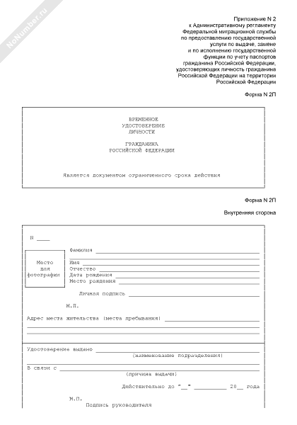 - 2Временное удостоверение личности гражданина Российской Федерации. Форма № 2П