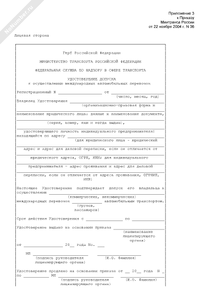 Удостоверение допуска к осуществлению международных автомобильных перевозок (рекомендуемый образец заполнения)