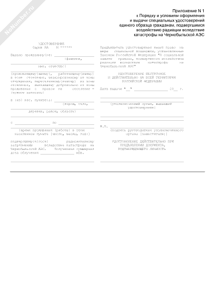 Удостоверение гражданина, подвергшегося воздействию радиации вследствие катастрофы на Чернобыльской АЭС (рекомендуемый образец заполнения)