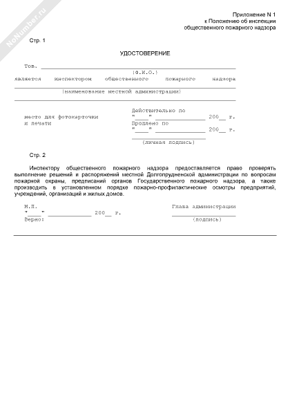 Удостоверение инспектора общественного пожарного надзора на территории города Долгопрудный Московской области (рекомендуемый образец заполнения)