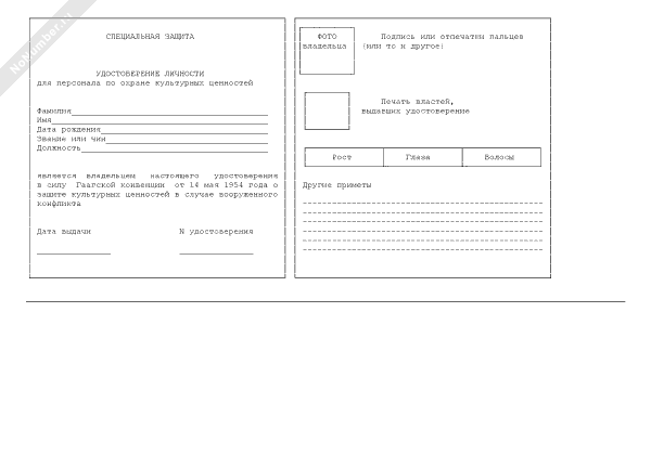 Удостоверение личности для персонала по охране культурных ценностей (рекомендуемый образец заполнения)
