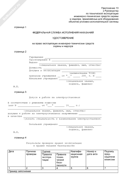 Удостоверение на право эксплуатации инженерно-технических средств охраны и надзора объектов уголовно-исполнительной системы (рекомендуемый образец заполнения)