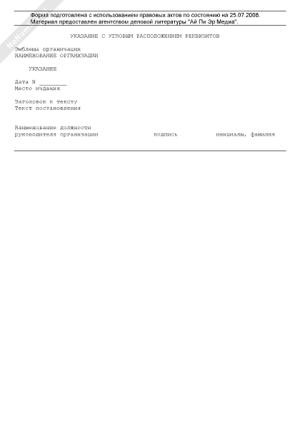 Указание с продольным расположением реквизитов