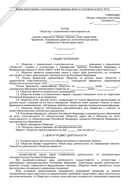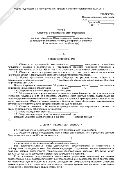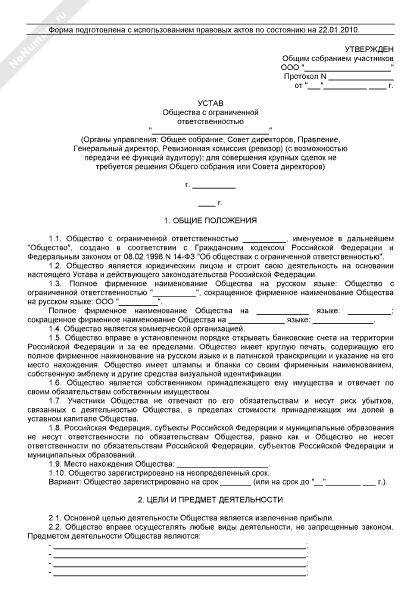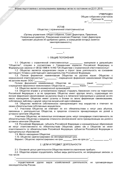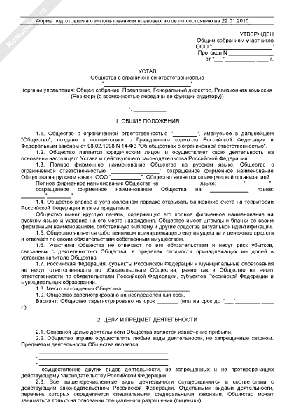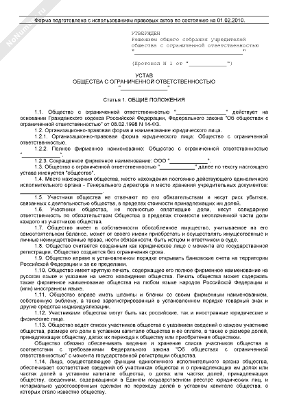 - 189Устав общества с ограниченной ответственностью