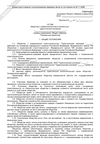 - 193Устав общества с ограниченной ответственностью — туристической компании
