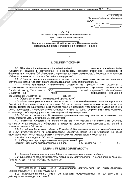 - 183Устав общества с ограниченной ответственностью с иностранными инвестициями (органы управления: общее собрание, совет директоров, генеральный директор, ревизионная комиссия (ревизор))