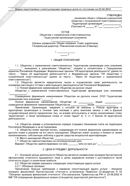 - 199Устав общества с ограниченной ответственностью аудиторской организации (компании)