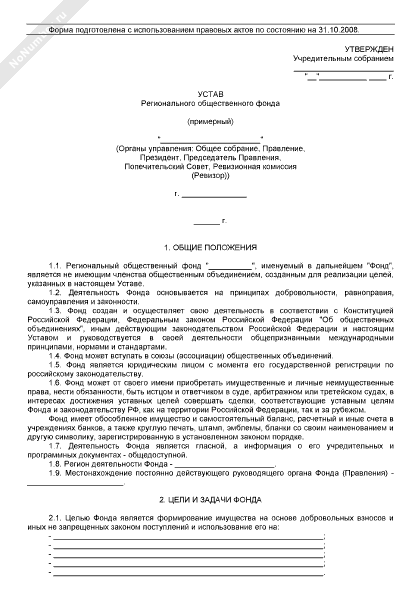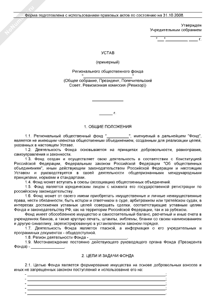 - 232Устав регионального общественного фонда (органы управления: общее собрание, президент, попечительский совет, ревизионная комиссия (ревизор))