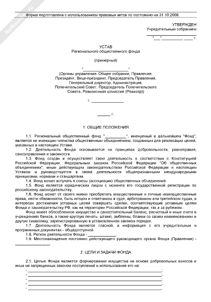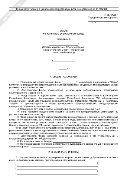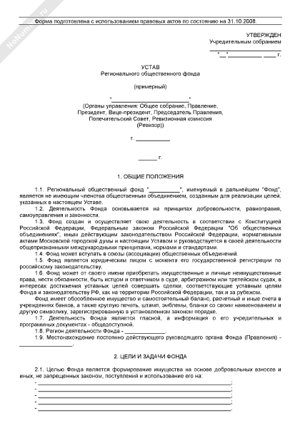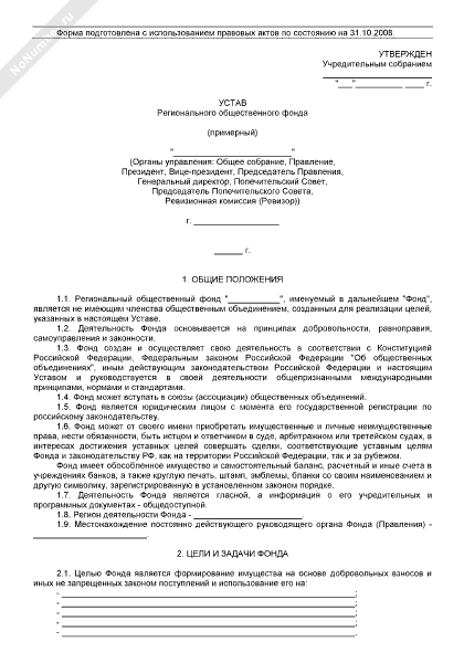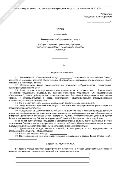 - 234Устав регионального общественного фонда (органы управления: общее собрание, попечительский совет, ревизионная комиссия (ревизор))