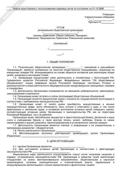 - 230Устав региональной общественной организации (органы: общее собрание, президент, вице-президент, правление, председатель правления, администрация, ревизионная комиссия)