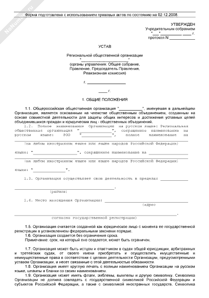 - 228Устав региональной общественной организации (органы: общее собрание (съезд, конференция), президент, правление, председатель правления, ревизионная комиссия)