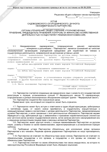 - 241Устав садоводческого (огороднического, дачного) некоммерческого партнерства (органы управления: общее собрание уполномоченных, правление, председатель правления; контроль за финансово-хозяйственной деятельностью осуществляет ревизионная комиссия)