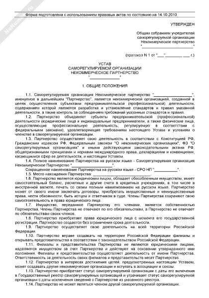 - 252Устав саморегулируемой организации, созданной в форме некоммерческого партнерства (общая форма)