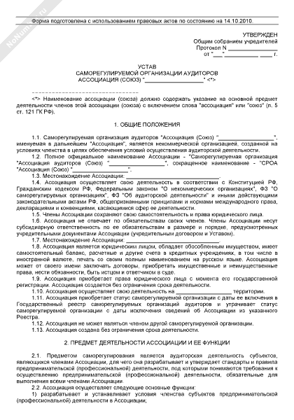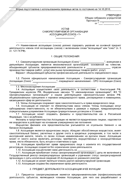 - 251Устав саморегулируемой организации, созданной в форме ассоциации (союза)