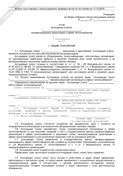 - 246Устав саморегулируемой организации в сфере теплоснабжения в форме ассоциации