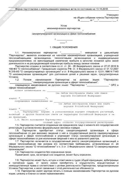- 243Устав саморегулируемой организации в сфере теплоснабжения в форме некоммерческого партнерства