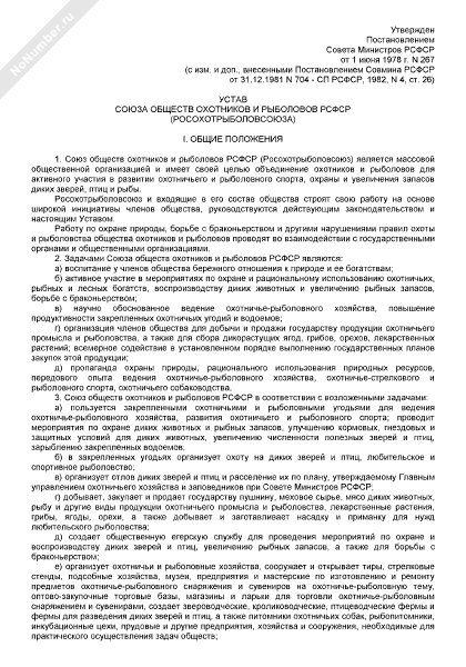 - 259Устав союза обществ охотников и рыболовов РСФСР (Росохотрыболовсоюза)