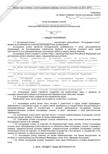 - 258Устав союза (ассоциации) сельскохозяйственных потребительских кооперативов