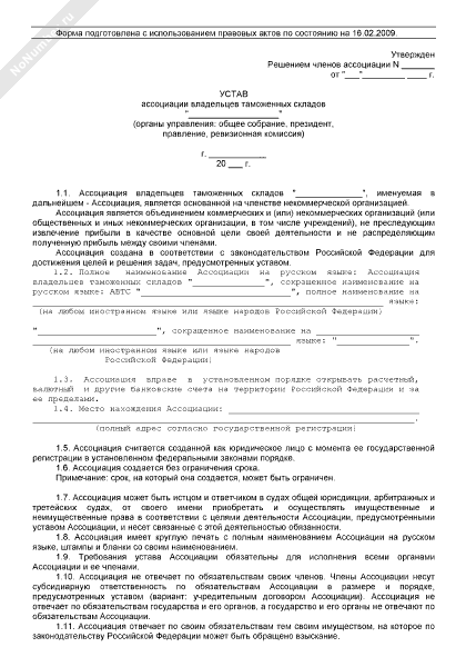 - 48Устав ассоциации владельцев таможенных складов (органы управления: общее собрание, президент, правление, ревизионная комиссия)