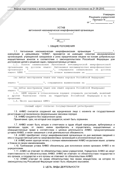 - 46Устав автономной некоммерческой микрофинансовой организации