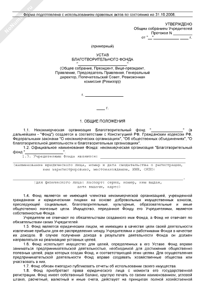 - 52Устав благотворительного фонда (органы управления: общее собрание, председатель общего собрания, попечительский совет, ревизионная комиссия (ревизор))