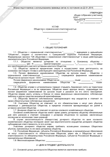 - 74Устав дочернего общества с ограниченной ответственностью (органы управления: общее собрание, генеральный директор, ревизионная комиссия)