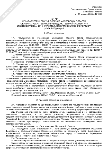 - 64Устав Государственного учреждения Московской области «Центр государственной вневедомственной экспертизы и ценообразования в строительстве «Мособлгосэкспертиза»