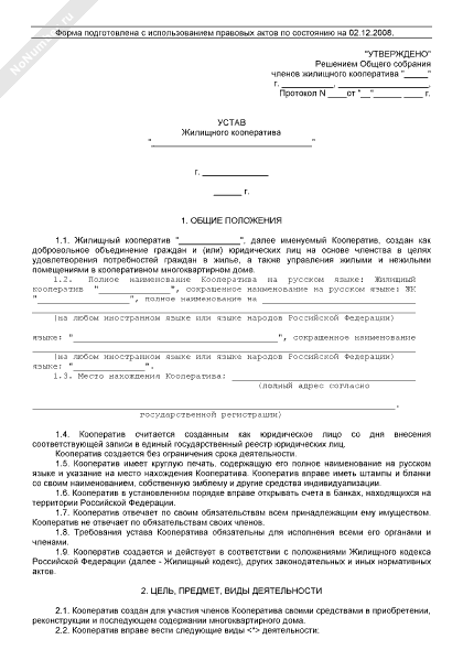 - 77Устав жилищно-строительного кооператива (органы управления: конференция представителей членов кооператива, правление кооператива, председатель кооператива)