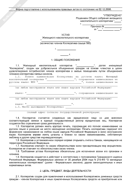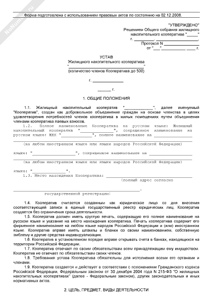 - 79Устав жилищного накопительного кооператива (количество членов кооператива до 500)